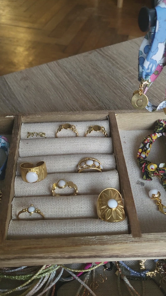 C'est pourquoi, nous travaillons avec des matériaux durables comme l'acier inoxydable hypoallergénique doré ou encore une résine que nous avons pris le temps de sélectionner qui ne jaunit pas avec le temps.
